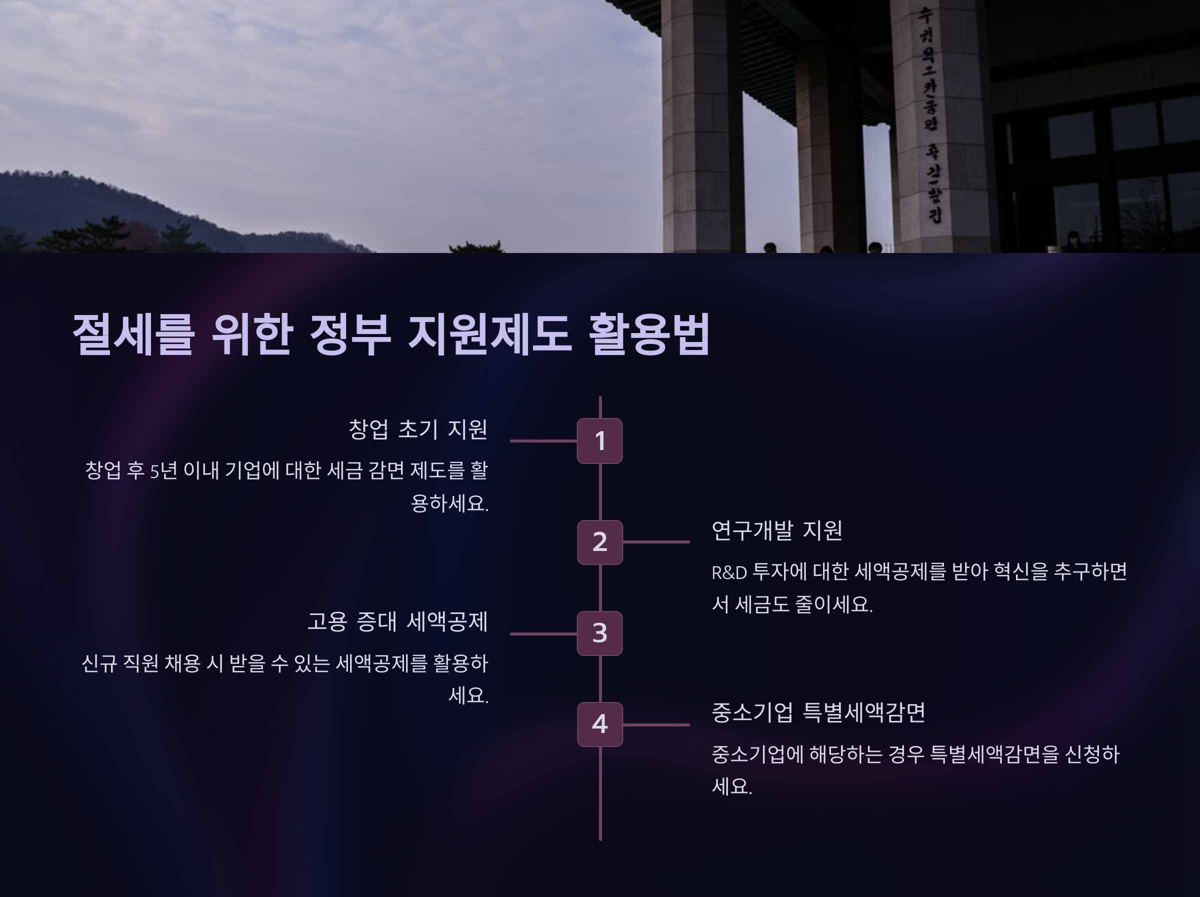 사업 규모에 맞게 절세 전략을 세우고, 정부 지원제도를 적극 활용하며, 철저한 세금 신고를 통해 합법적으로 세금 부담을