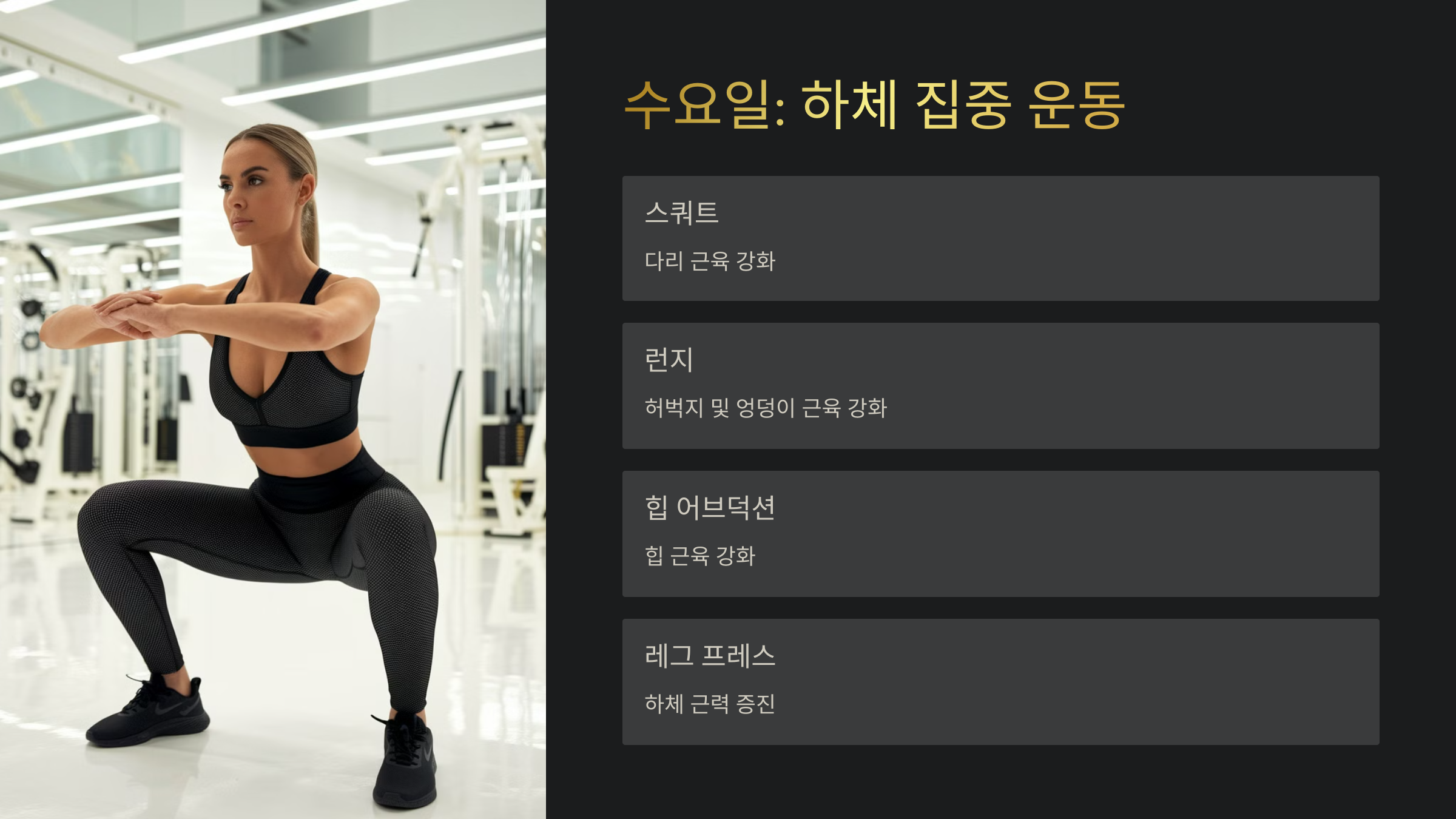 - 수요일: 하체 집중 운동