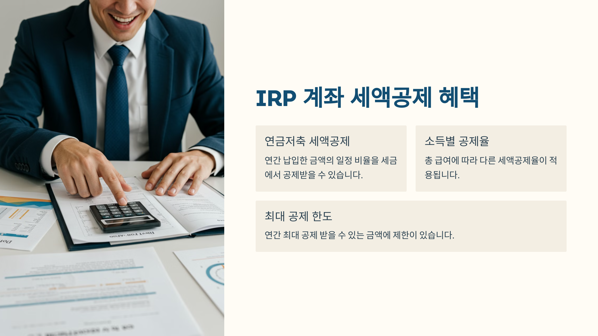 A1. IRP 계좌는 세액공제 혜택이 크고, 퇴직금 운용이 가능하기 때문에 연금저축과 함께 활용하면 절세 효과가 커져요.